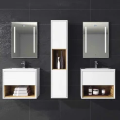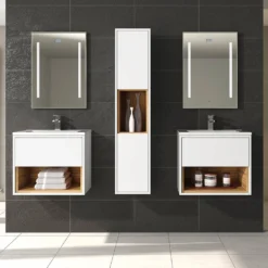 Hudson Reed Coast 600mm Floor Standing Vanity Unit And Basin – White Gloss & Driftwood