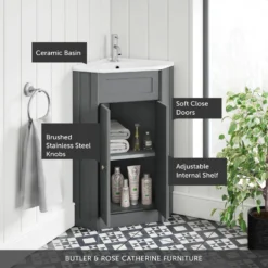 Butler & Rose Catherine Corner Cloakroom Traditional Vanity Unit – Matt Grey