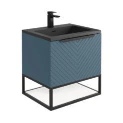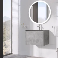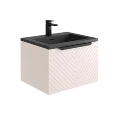 Harbour Substance 600mm 1 Drawer Wall Mounted Vanity Unit & Black Basin – Concrete Effect