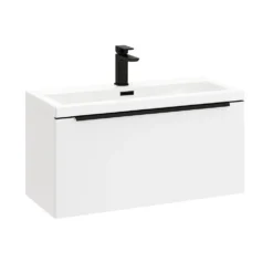Harbour Status 800mm Wall Hung Vanity Unit & Basin – Gloss White With Matt Black Handle