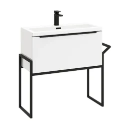 Harbour Status 800mm Wall Hung Vanity Unit & Basin – Gloss White With Matt Black Frame