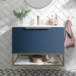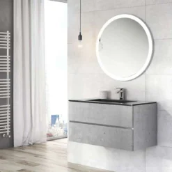 Harbour Substance 900mm 1 Drawer Wall Mounted Vanity Unit & Black Basin – Concrete Effect