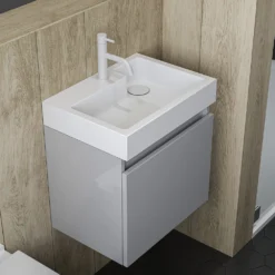 Minnie Wall Hung 500mm Cabinet & Polymarble Basin – Gloss Grey Mist