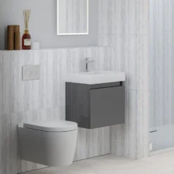 Minnie Wall Hung 500mm Cabinet & Polymarble Basin – Gloss Grey