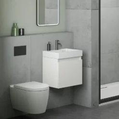 Minnie Wall Hung 500mm Cabinet & Polymarble Basin – Gloss Grey
