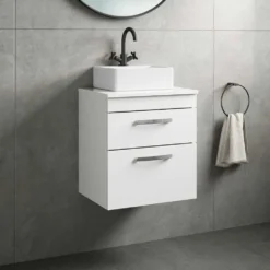 Emily 600mm Floorstanding 2 Drawer Unit In Natural Oak And Alana 460mm Countertop Basin