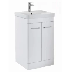 Harbour Grace 600mm Floorstanding Vanity Unit With Polymarble Basin – White Gloss