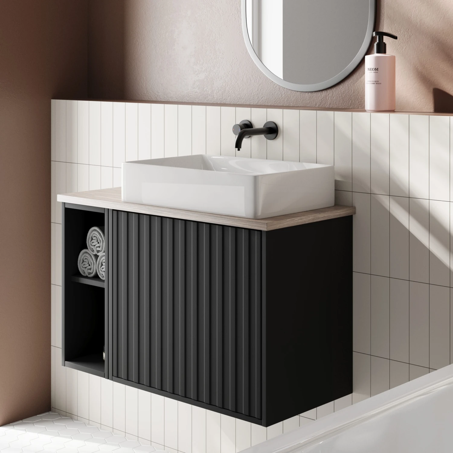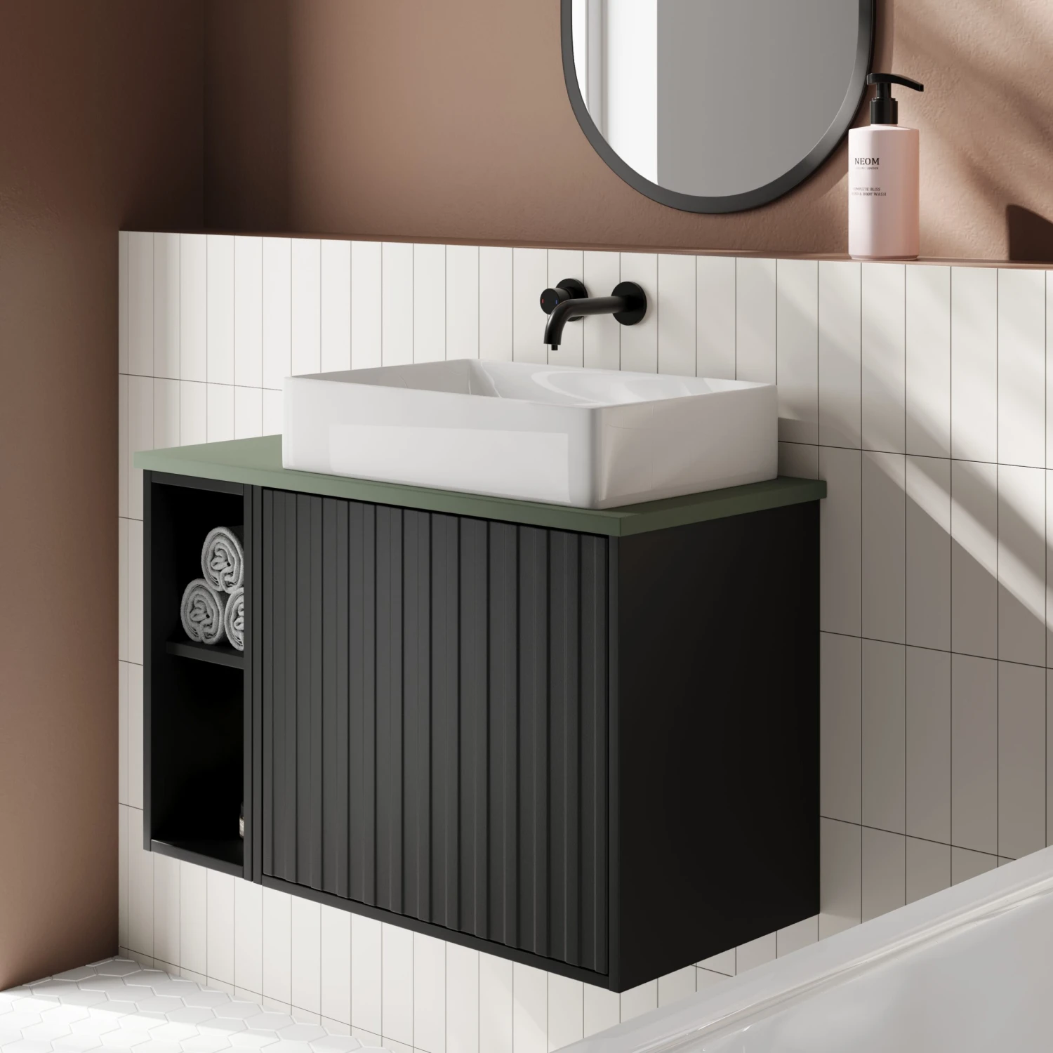 - Worktop comes undrilled so you have the flexibility to pair it with your choice of countertop basin and a wall mounted basin tap or tall basin tap
