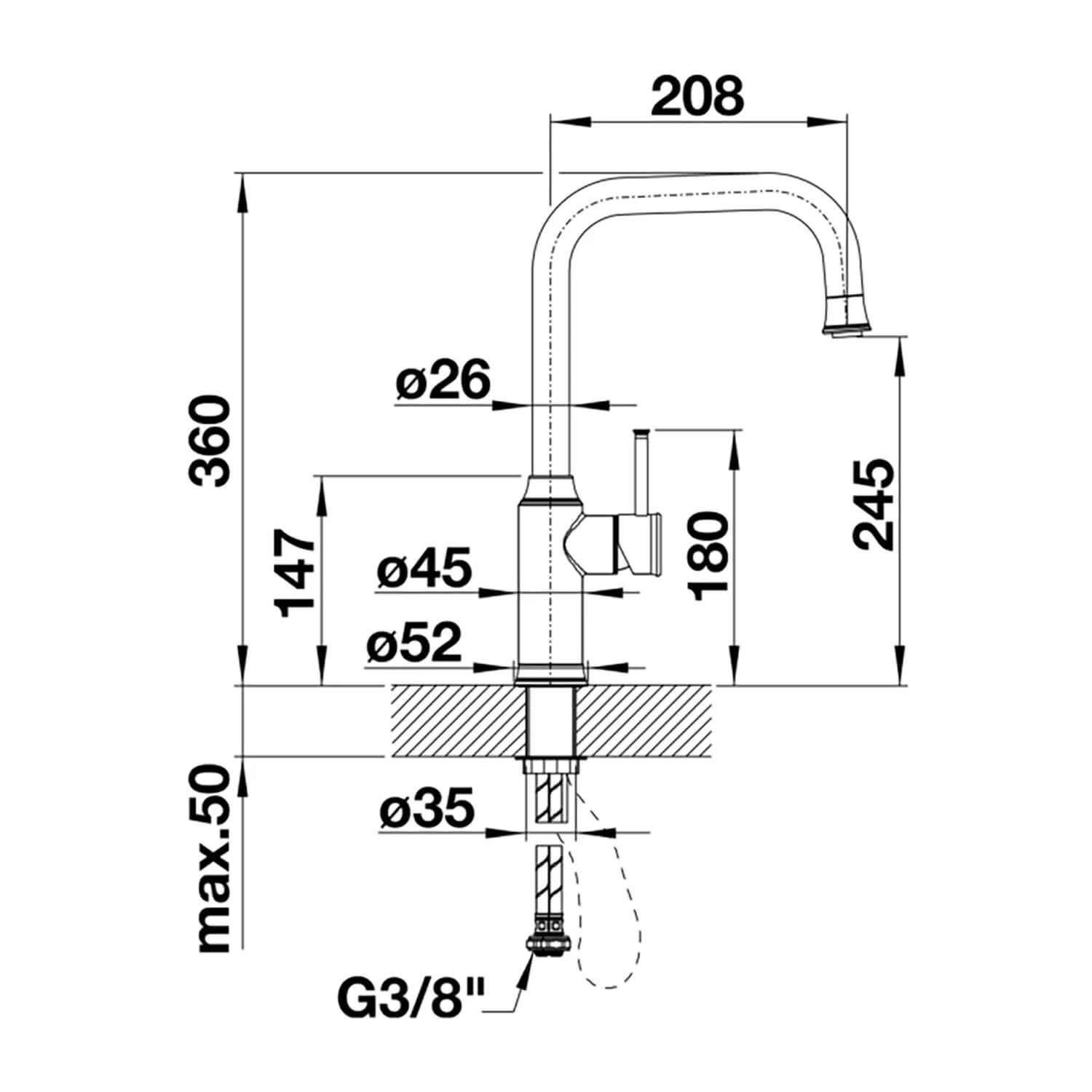 - Tap hole size – Ø35mm