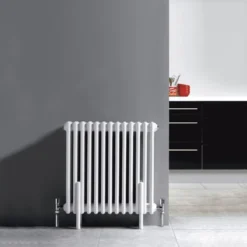 - Suitable for pipework coming through the floor or alternatively, suitable if your pipework runs along the wall and your chosen radiator has a side inlets – learn more about finding the right radiator valves for you in our Types of Radiator Valves guide