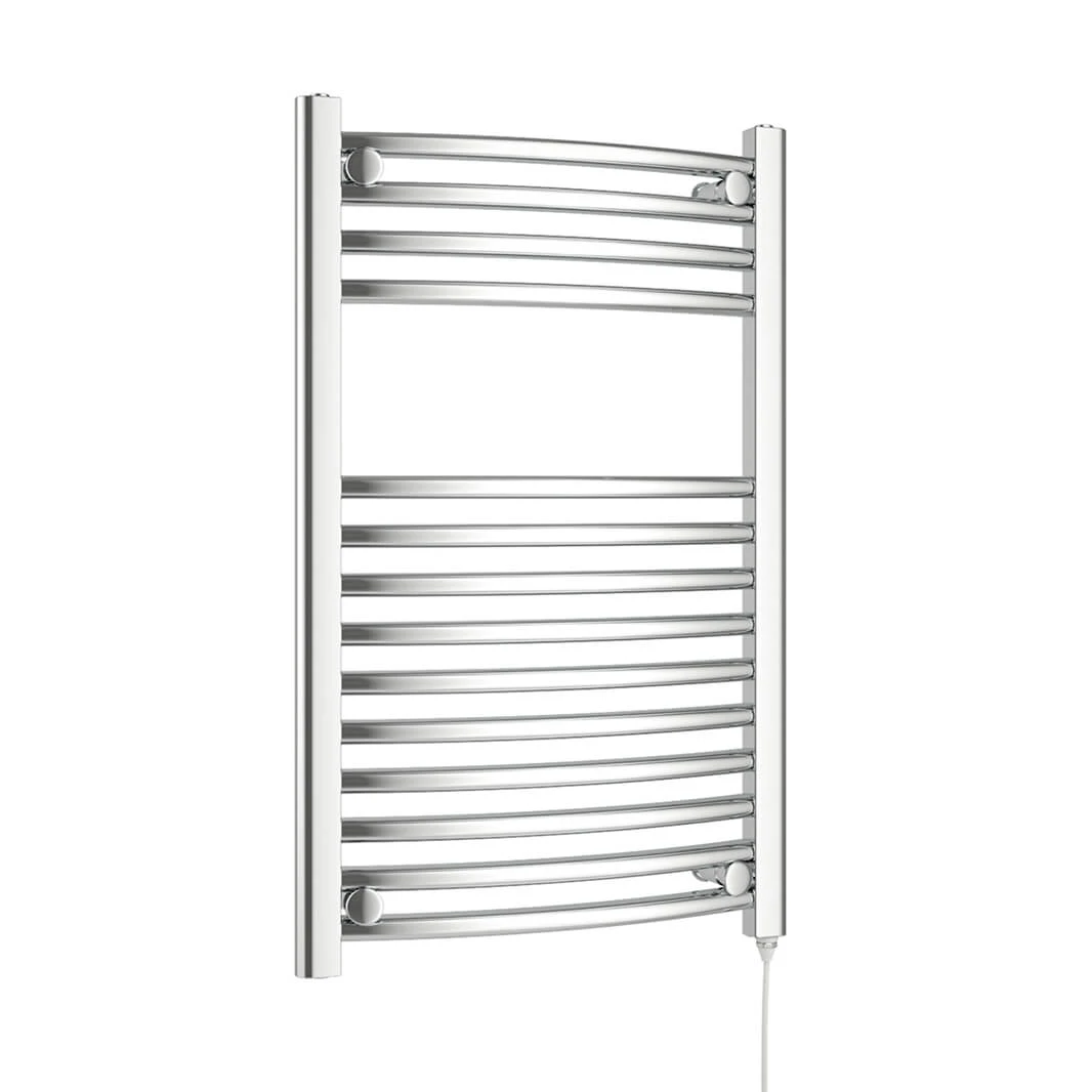 - Electric towel rail constructed from mild steel in a chrome finish