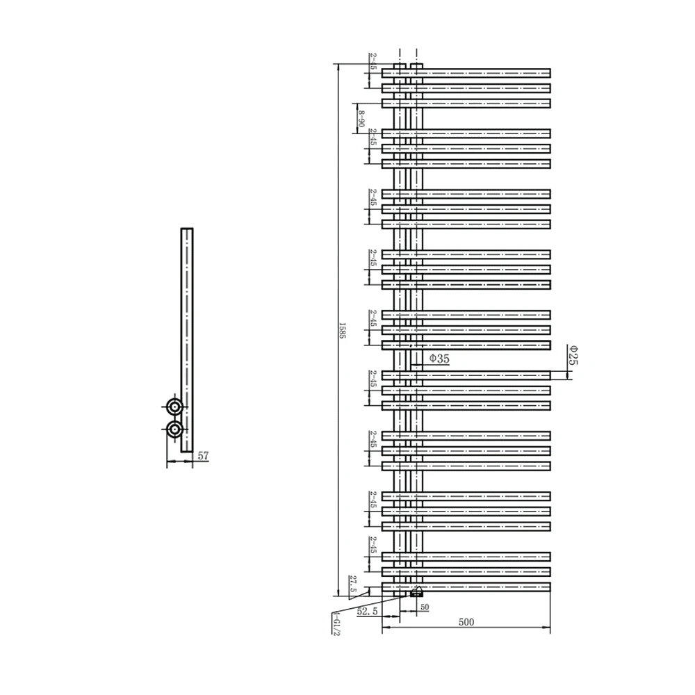 - Minimalist sleek heated towel rail design perfect for warming your towels in your bathroom