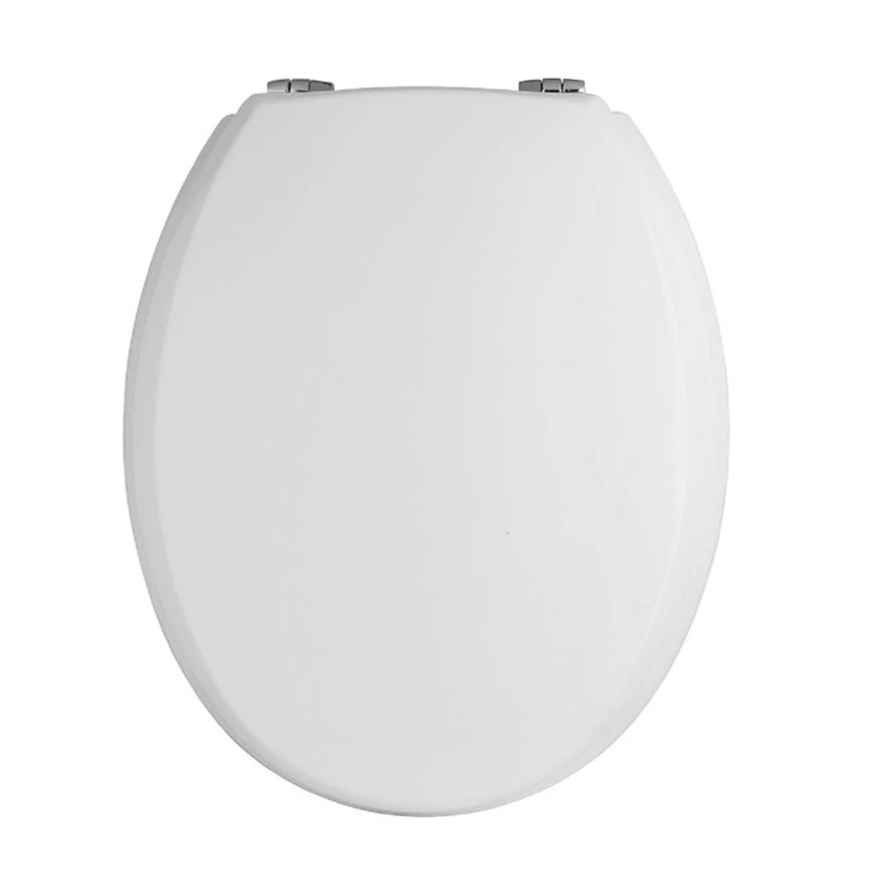 This traditional white toilet seat has a round design with bottom fix chrome hinges allowing for easy installation. At a very affordable price and quality assured with a 5 year manufacturer guarantee this toilet seat is a perfect choice.