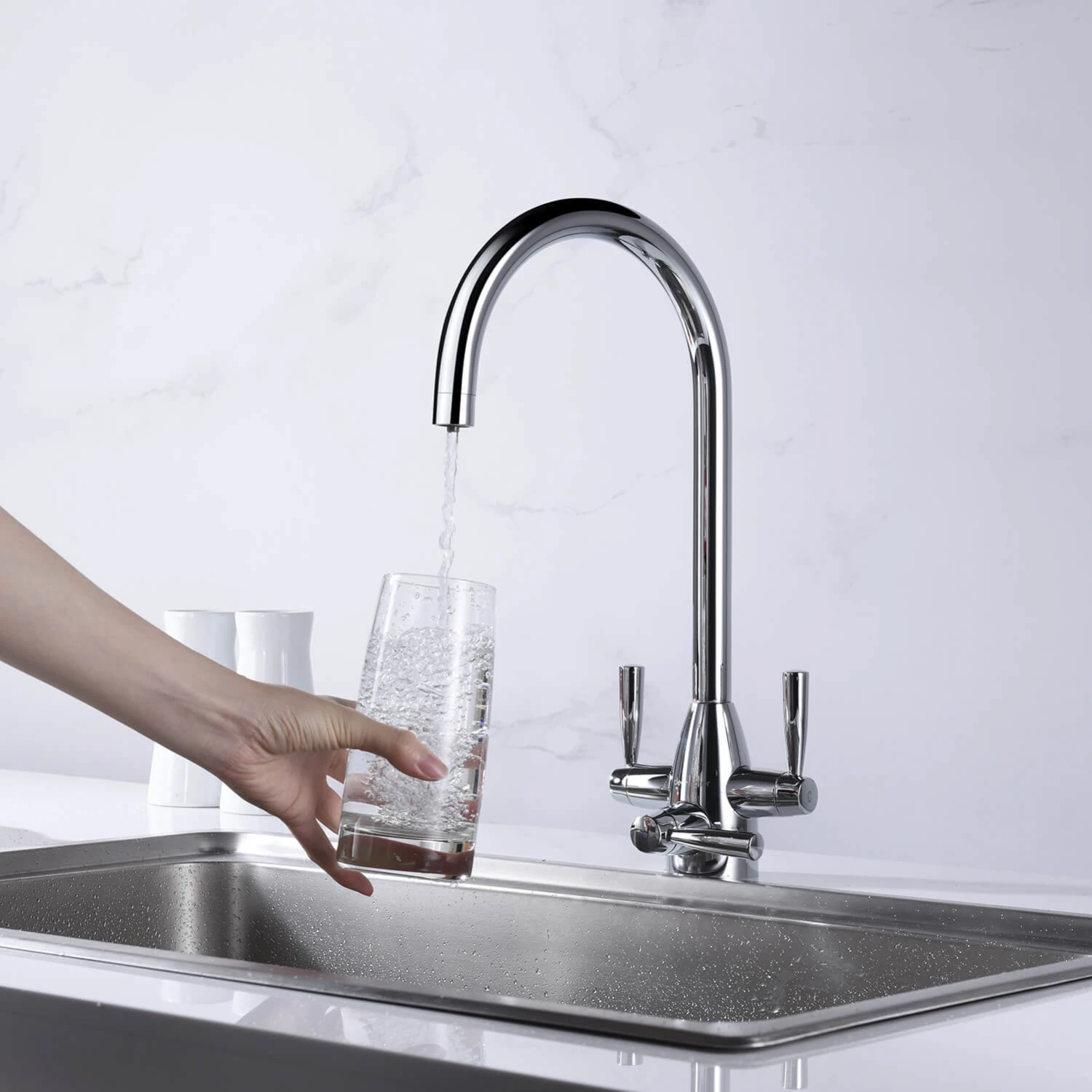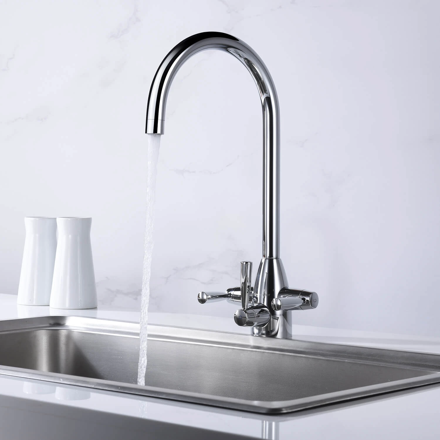 Nothing says luxury quite like the sleek polished chrome finish and mesmerising features of the Clearwater Eclipse triple lever mono kitchen mixer and cold filtered water tap. This gorgeous kitchen tap boasts a captivating contemporary design, a 360° swivel spout to ensure maximum movement, cold filtered water at the turn of a handle, and of course a rather comforting 5 year manufacturer’s guarantee. What’s not to love about this little slice of modern kitchen luxury?