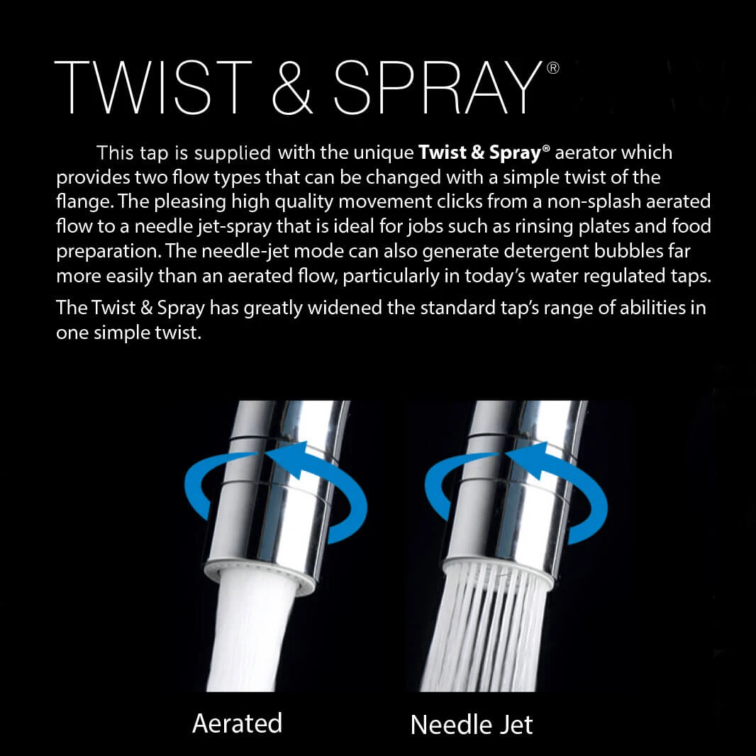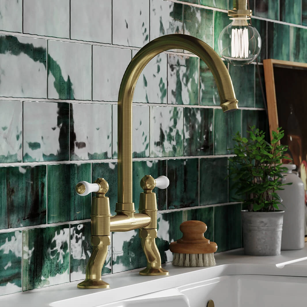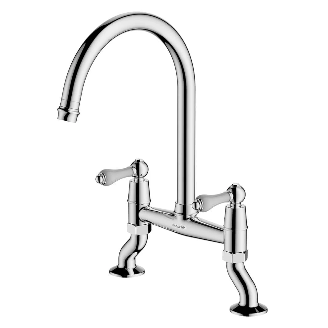 - Bridge kitchen mixer with swan neck spout & twin levers