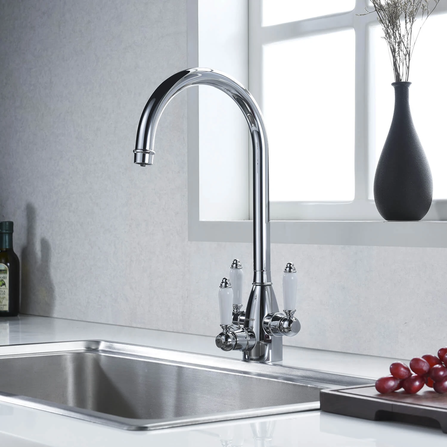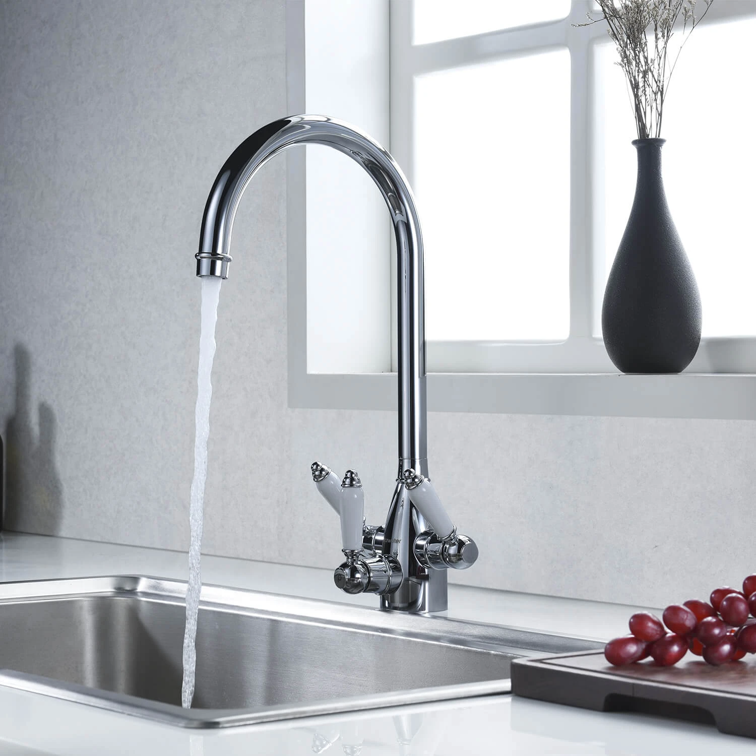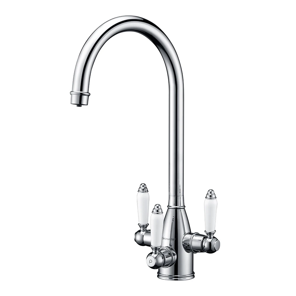 We pride ourselves on offering the absolute best here at Tap Warehouse, and the Clearwater Krypton triple lever mono kitchen mixer and cold filtered water tap is certainly no exception. This more traditional design is a hub of style and practicality. Take a moment to appreciate the mesmerising polished chrome finish fit for any luxury period kitchen, the 360° swivel spout to give you as much freedom to wash those difficult pans as possible, and of course the ability to get cold filtered water straight from your own kitchen tap. Nothing says luxury quite like the Krypton, and with a very comforting manufacturer’s guarantee of 5 years, you’d hate to miss out.