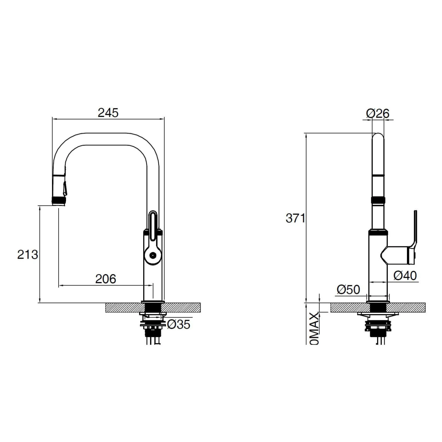 - Maximum worktop thickness – 65mm