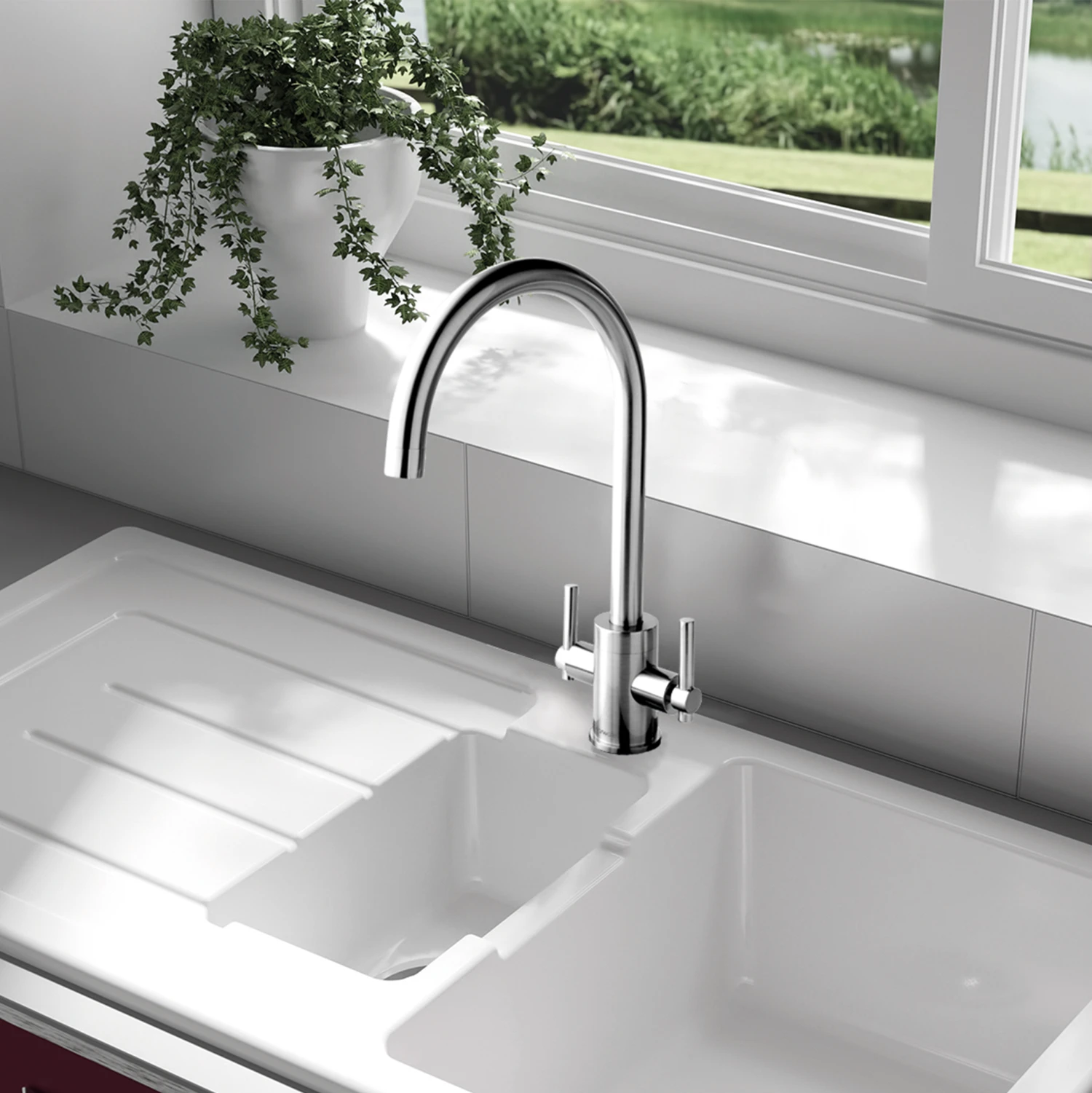 With twin lever operation, you have separate hot and cold controls, ensuring precise temperature control whilst making sure cold drinking water is never mixed with hot. This style of tap is often the best solution for homes which have low pressure systems.