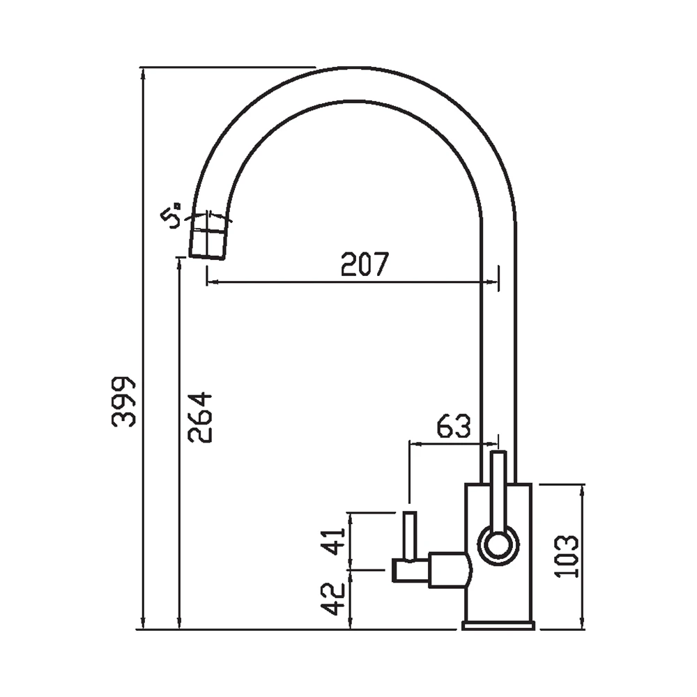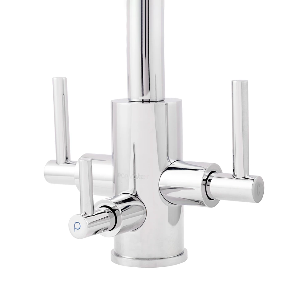 - Triple lever control – side levers for hot & cold water and front lever for filtered water