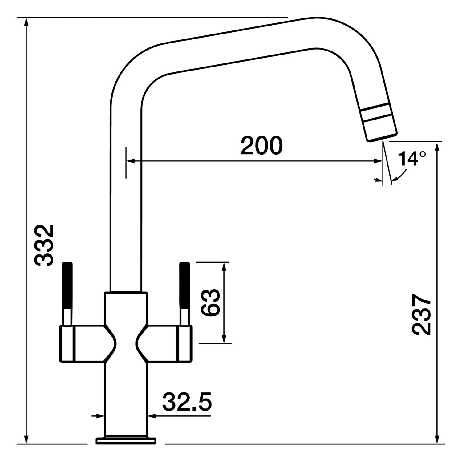 - Spout exit height – 237mm