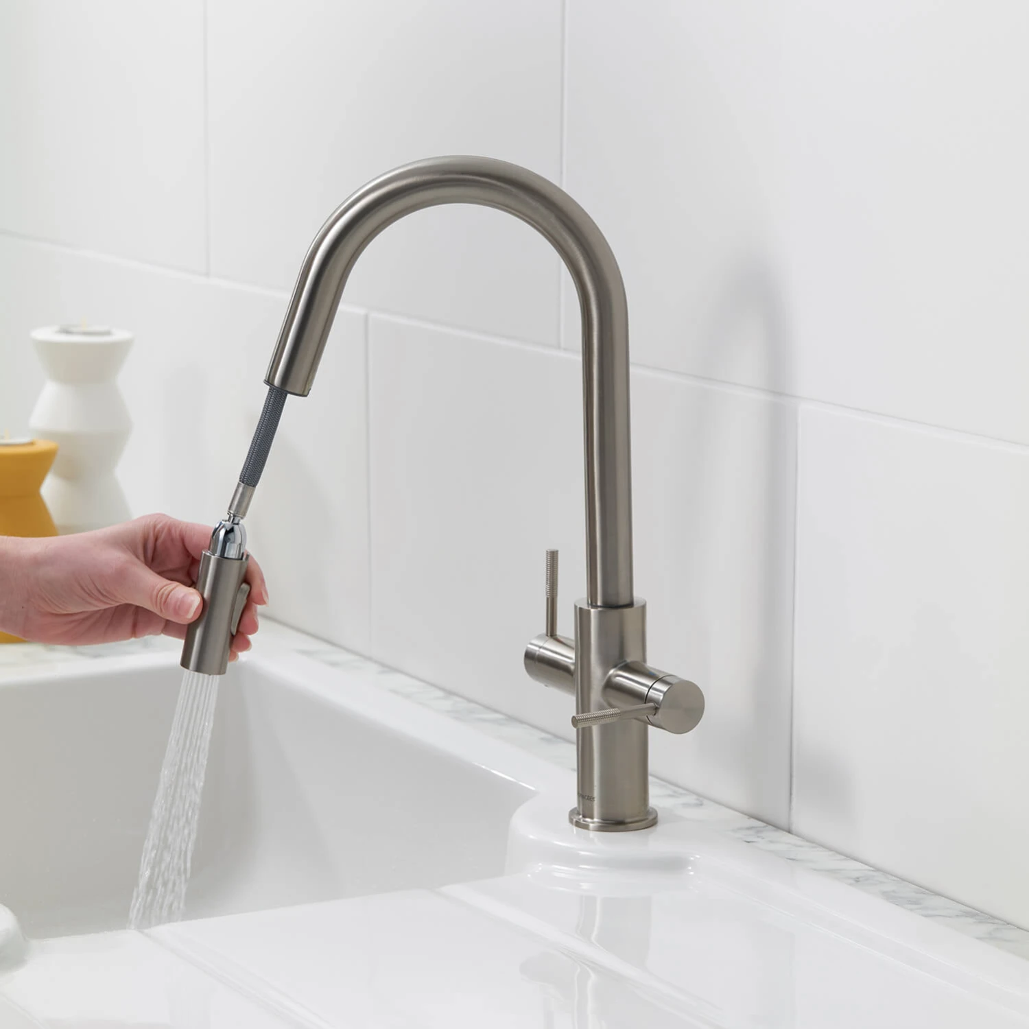 - 360° swivel spout and 600mm pull out hose for maximum flexibility – great for cleaning, filling pots and pans, or even watering plants on the windowsill