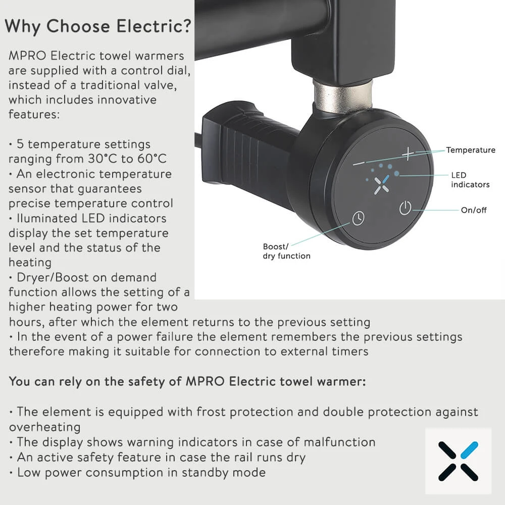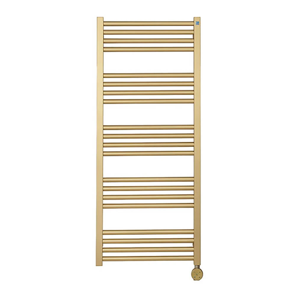 The Crosswater MPRO Electric Brushed Brass Heated Towel Rail matches perfectly with the Crosswater MPRO range. Click here to visit the complimentary Crosswater MPRO brushed brass range.