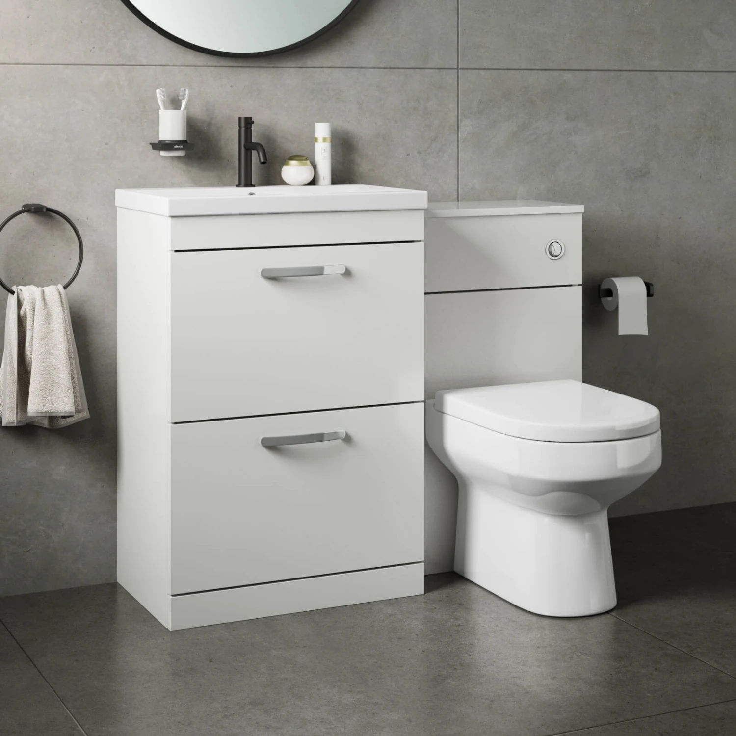 Combination units consist of a vanity unit with basin and a matching back to wall toilet unit. What is great about a combination unit is that the set up of units can be either left or right handed. Some come with a back to wall toilet with a dual flush concealed cistern. For those that don’t, it’s easy to add one to your unit from our selection, or you can choose your own