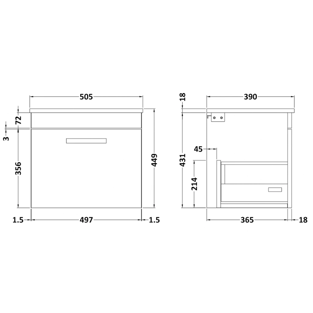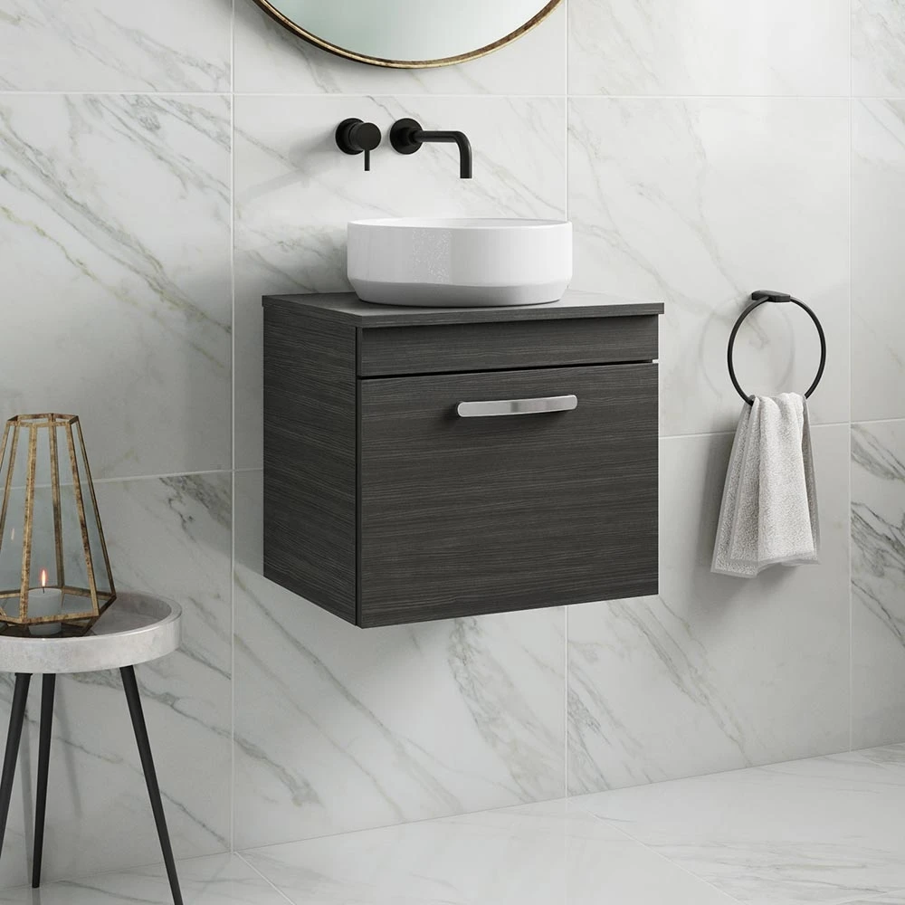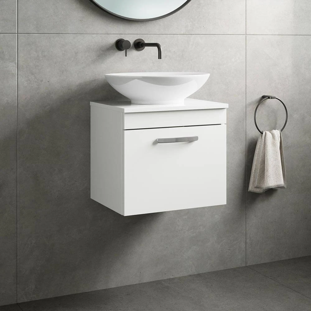 Wall mounting your bathroom furniture is the best way to ensure that you have a stylish, easy to clean bathroom whilst also creating the illusion of a more spacious bathroom. The Emily countertop basin vanity unit is compact in design, but inside its soft-close single metal box drawer there is more than enough storage space for those essential toiletries.