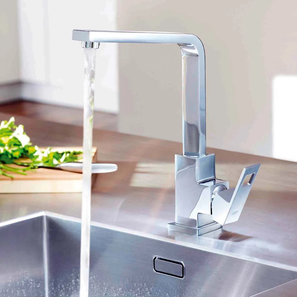 The Eurocube features a crisp, linear silhouette that will suit the most cosmopolitan of kitchens. This square design is further enhanced by the eye-catching cut-out detail on the lever adding to its architectural appeal.