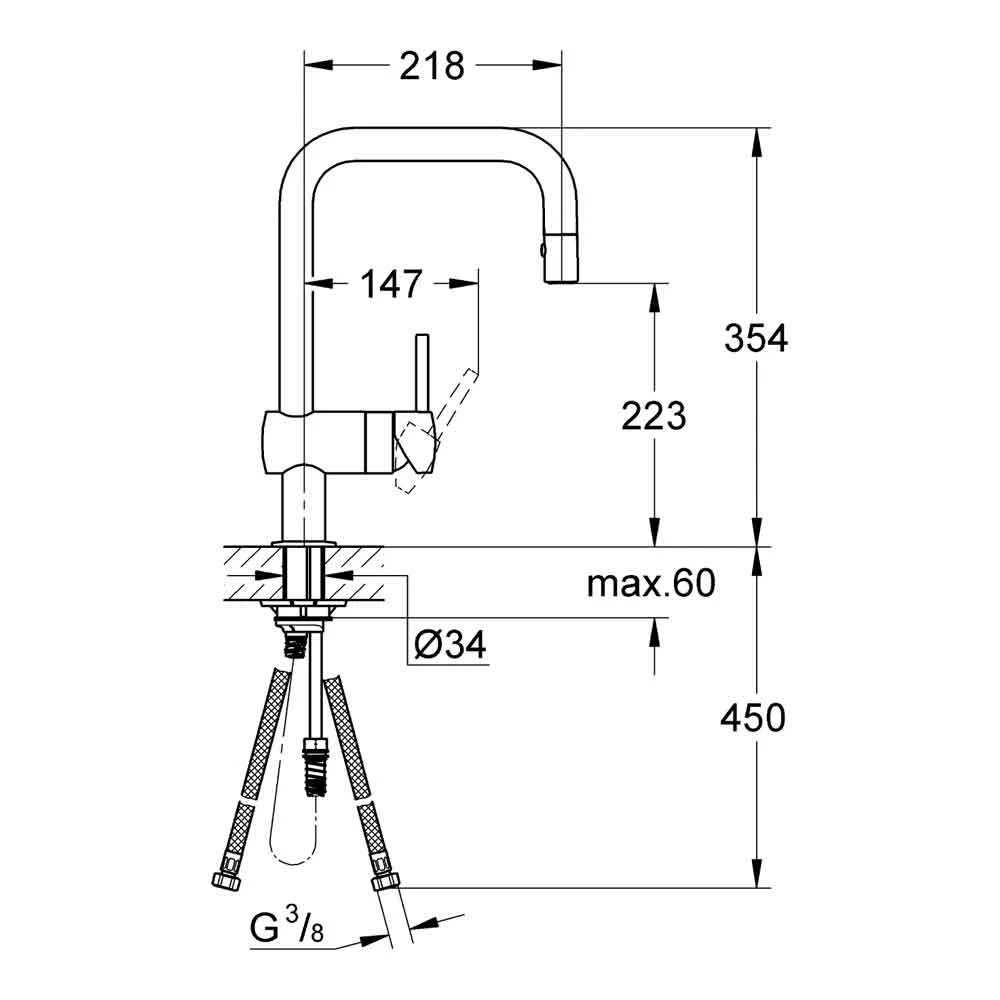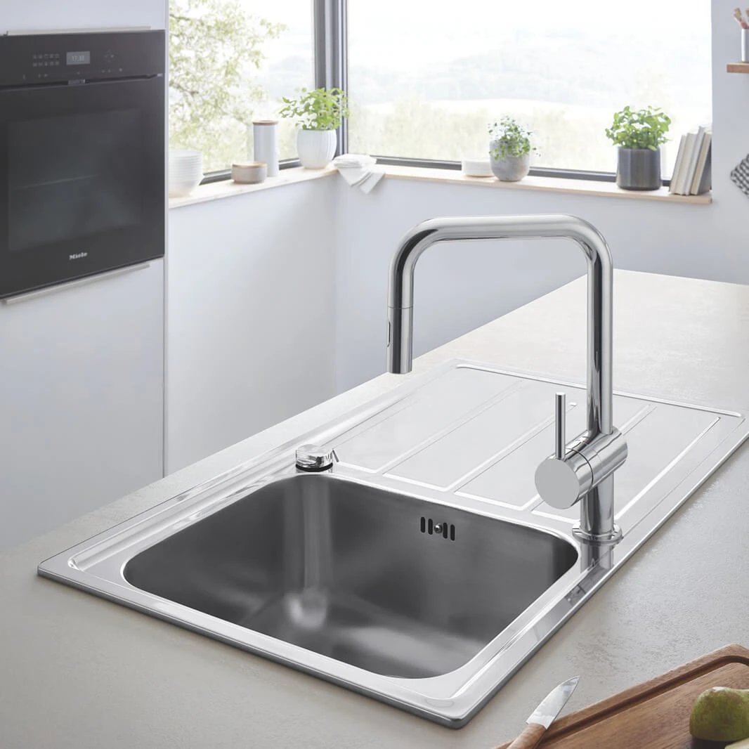 The Minta family have an understated slender elegance that has ensured them to be one of Grohe’s most popular taps both here and in Germany. The pull-out spray on the Minta sits very unassuming in the spout, but once called upon, it does its job with aplomb thanks to its two spray settings, it’s perfect for both cleaning and rinsing fresh food.