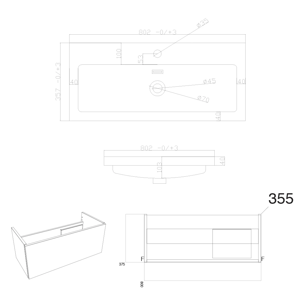 - Depth – 355mm