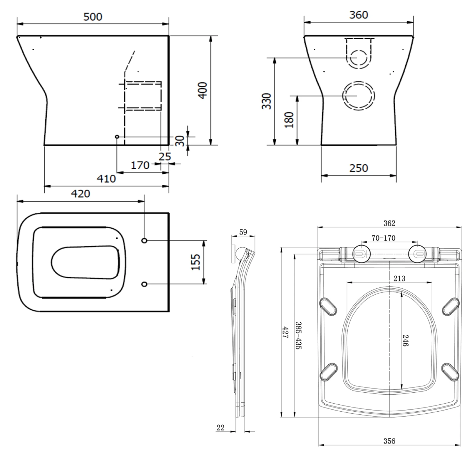 *Please note – due to the manufacturing process the toilet may have a +/- 5% tolerance on the measurements*