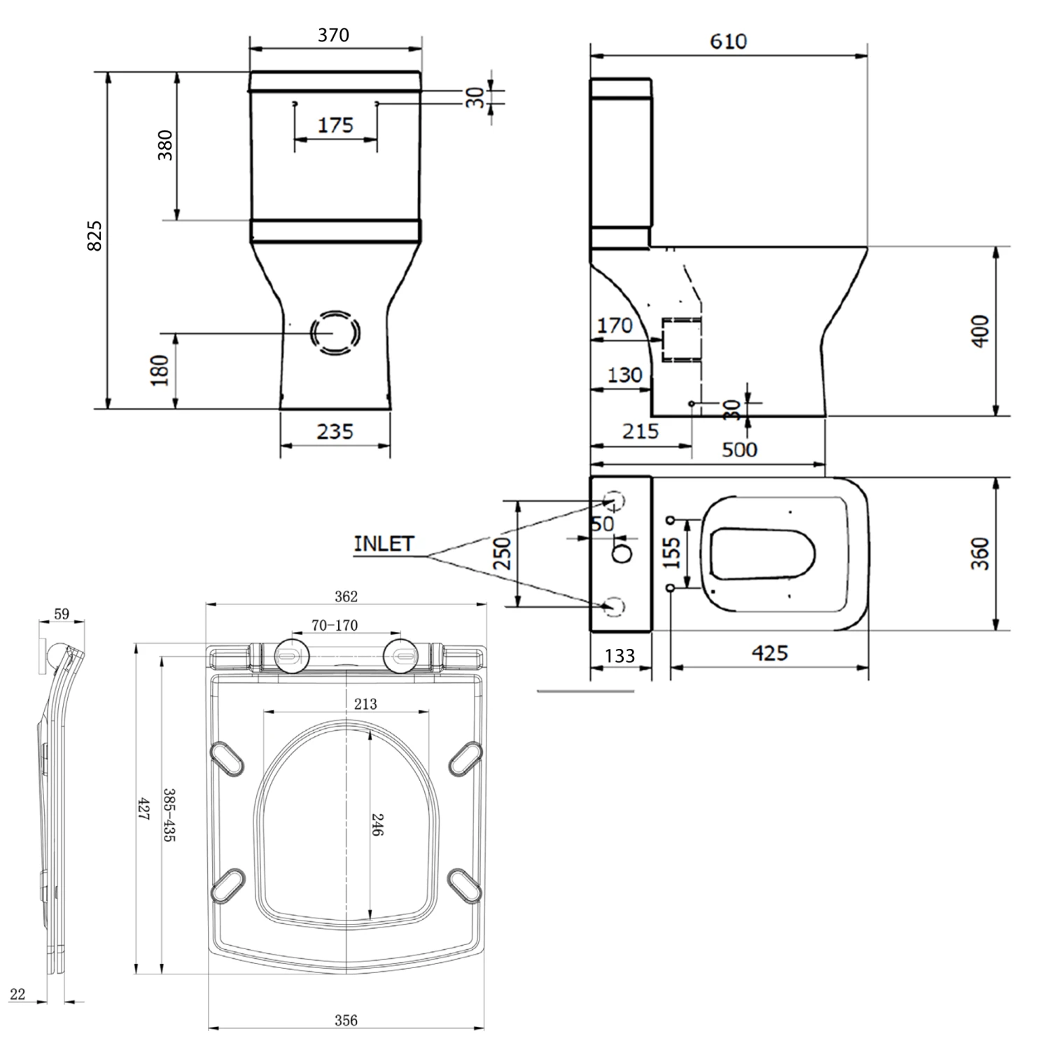 *Please note – due to the manufacturing process the toilet may have a +/- 5% tolerance on the measurements*