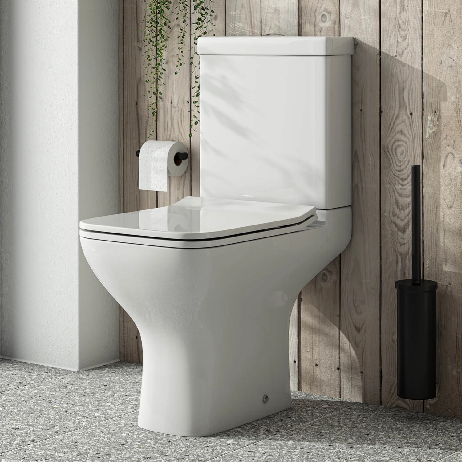 - Includes wafer thin soft close seat – closes silently every time