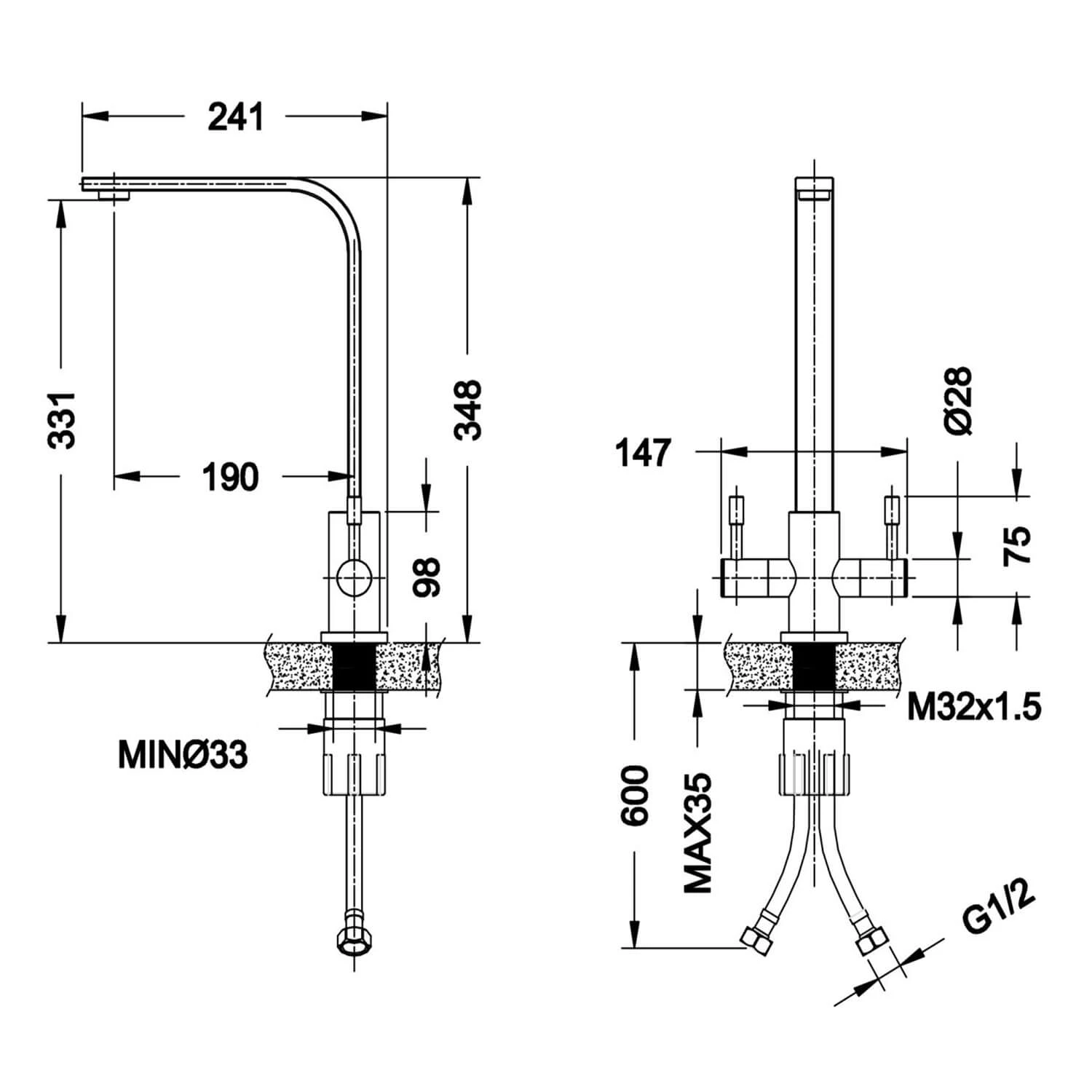- Suitable for medium to high water pressure systems – requires water pressure between 0.5 and 6 bar
