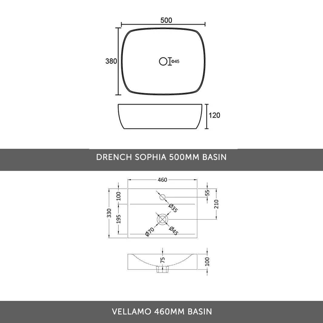 Drench Sophia Rectangular Countertop Basin – 500 x 380mm