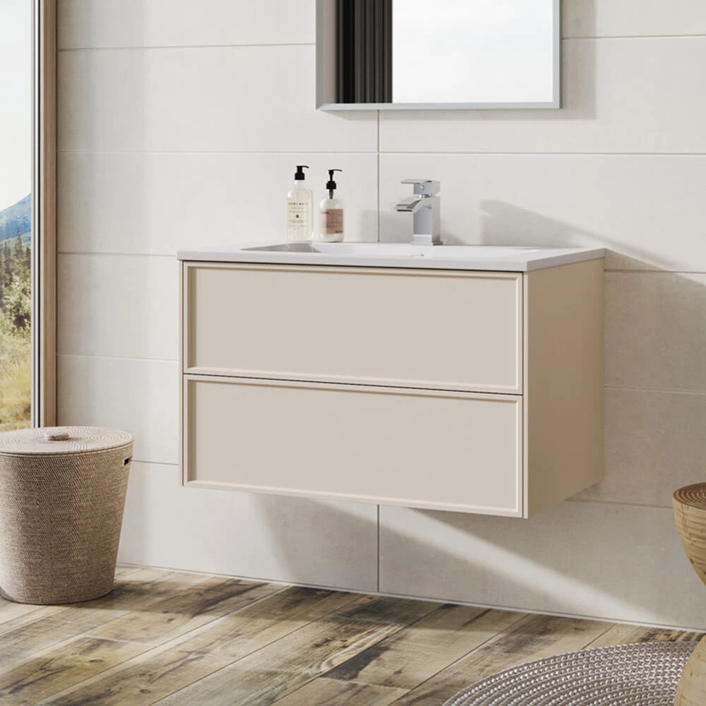 The drawer space is generous and utilizes both “Push to Open and “Soft Close’ mechanisms, aiding in protecting the surface, edges and corners of the wood from chips or marks. The composite resin basin also sits flush to the vanity and is both extremely durable and scratch resistant to allow you peace of mind.