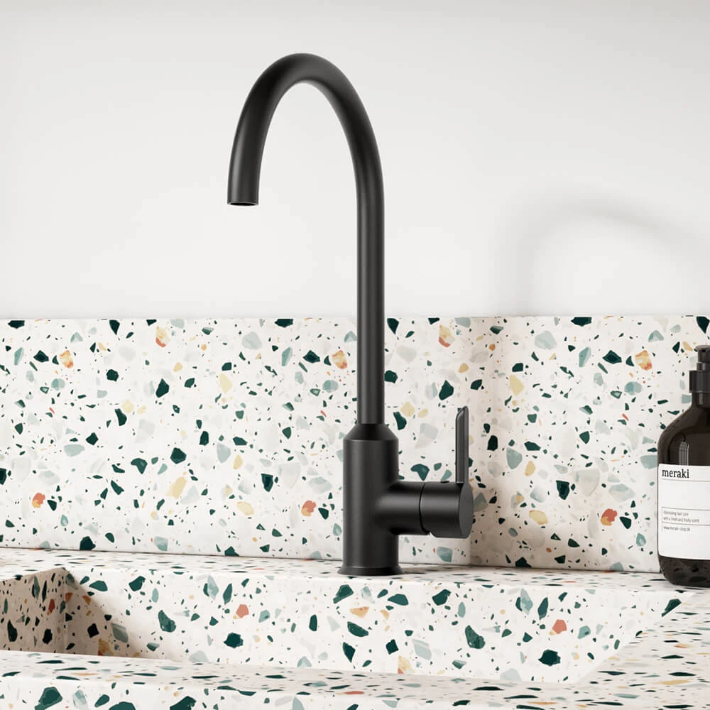 - Made from solid brass with a striking textured granite matt black finish