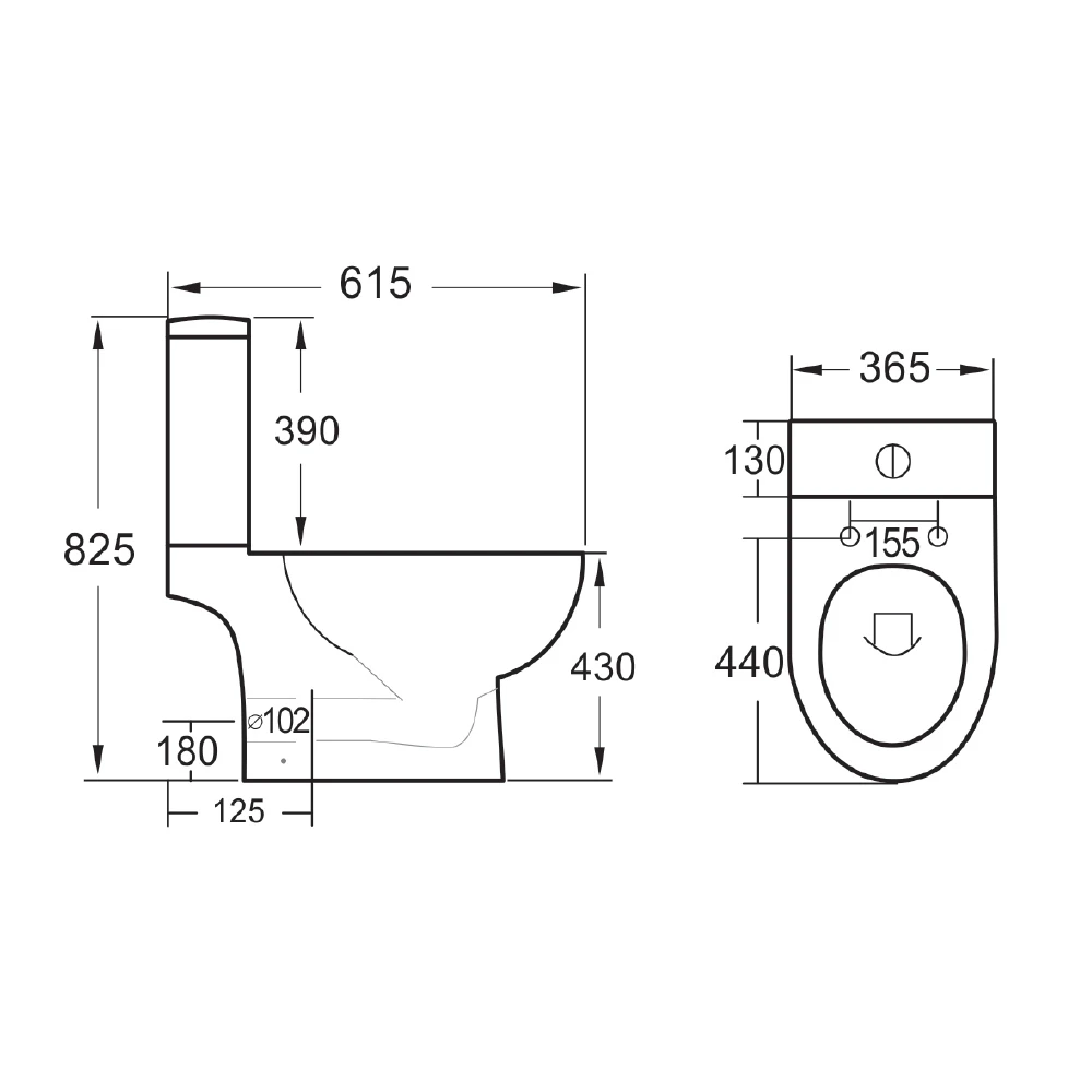 - Rimless design – more hygienic, environmentally friendly and easier to clean than standard toilets