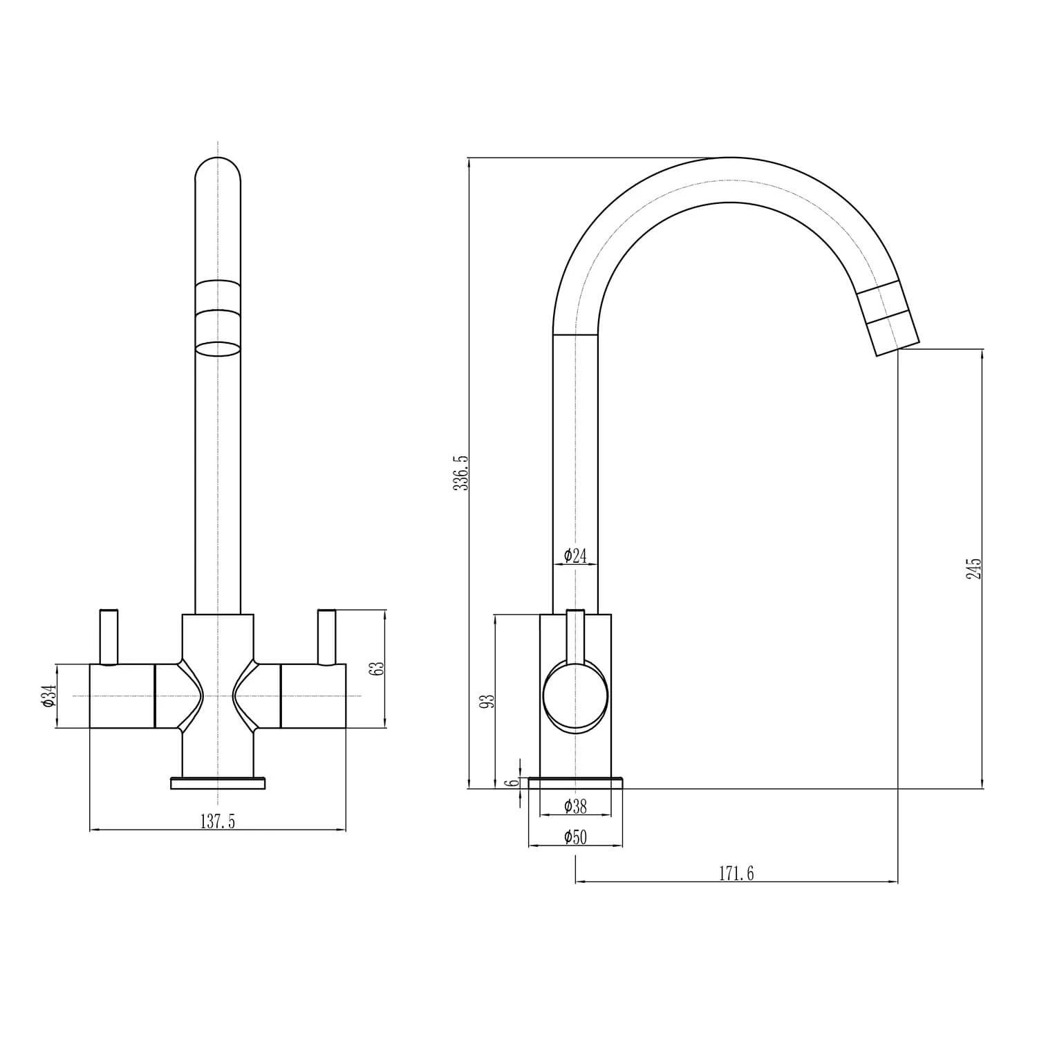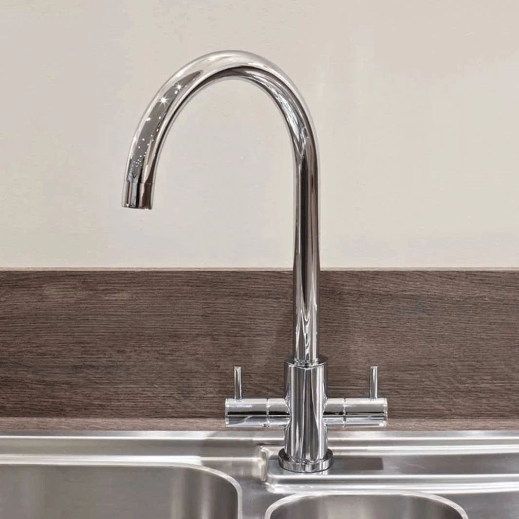Harbour make beautiful taps at surprisingly affordable prices, and the Vibe is a fantastic example of this. The Vibe measures a total of 336mm high lending it an elegant, stately look. The spout swivels smoothly round 360°, and the 2 simple-to-use lever handles require just a quarter turn to go from off to fully on.