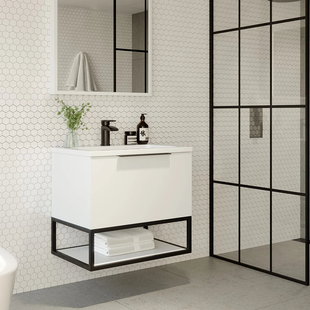 - Stylish Matt Black framed shelf for additional space– fresh towels always at your fingertips