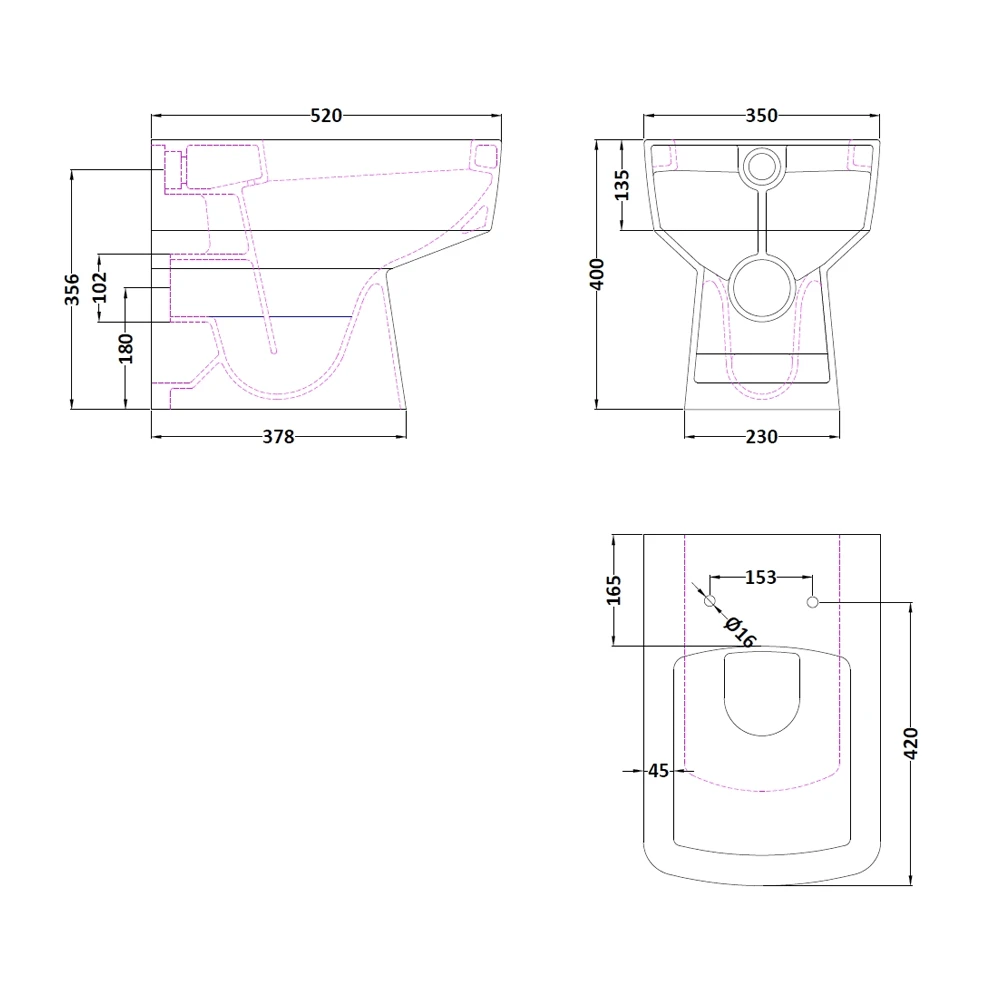 - Toilet seat is ‘top-fixing’, making it easy to install, and any future maintenance simple (i.e no need to remove the whole pan just to get at the seat!)