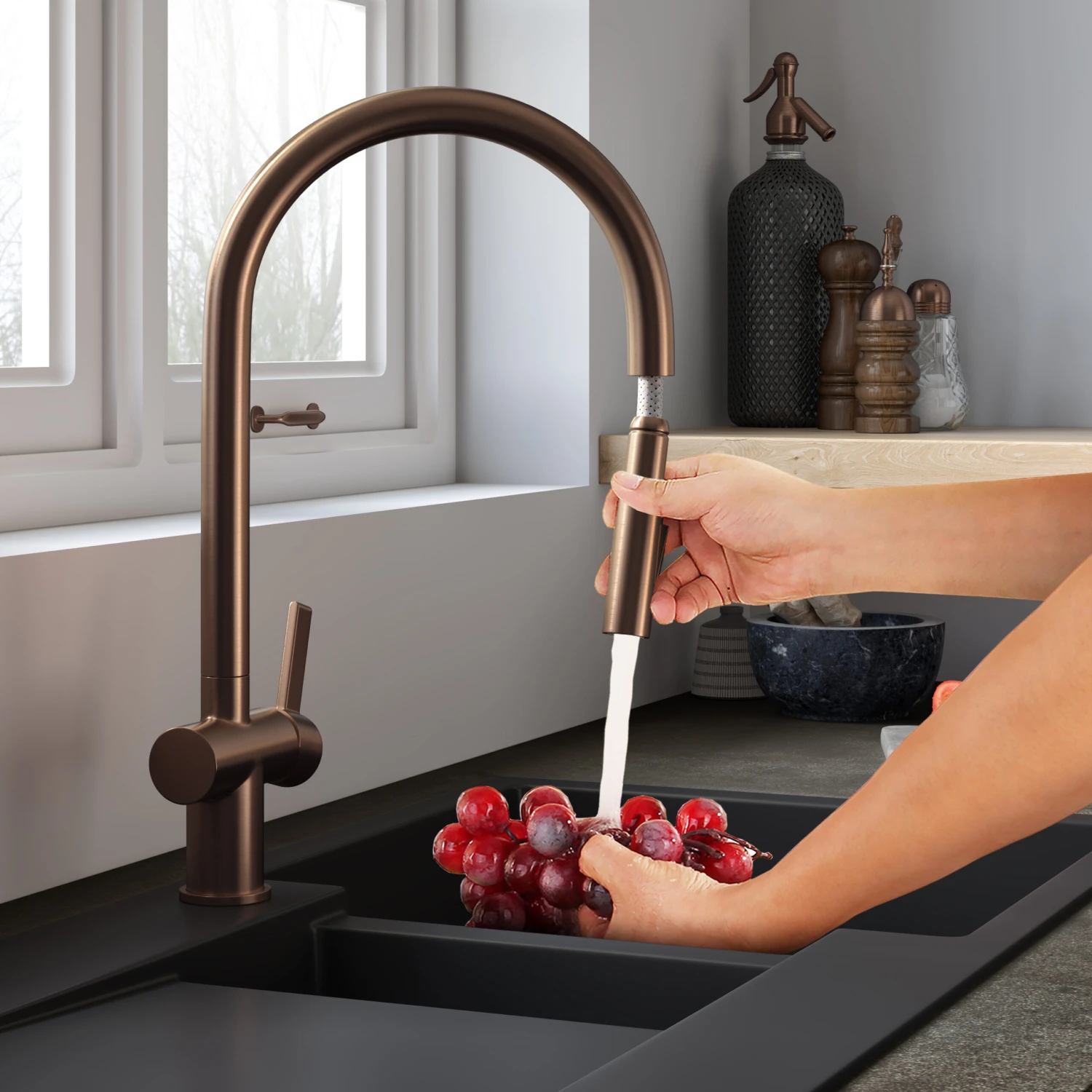 - Elegant Brushed Bronze finish which is PVD coated giving it increased protection against scratches and everyday wear & tear – read more about how you can look after your tap in our Aftercare for Special Finishes guide