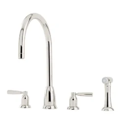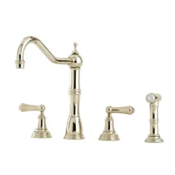 Perrin & Rowe Alsace 3 Hole Sink Mixer With Lever Handles & Rinse – Polished Nickel