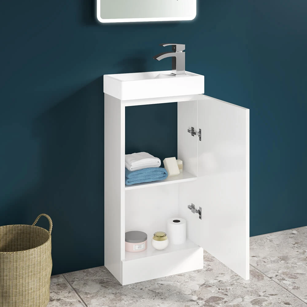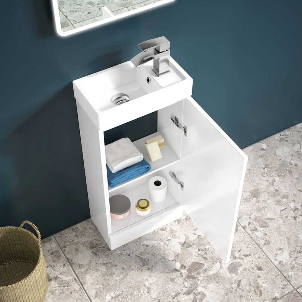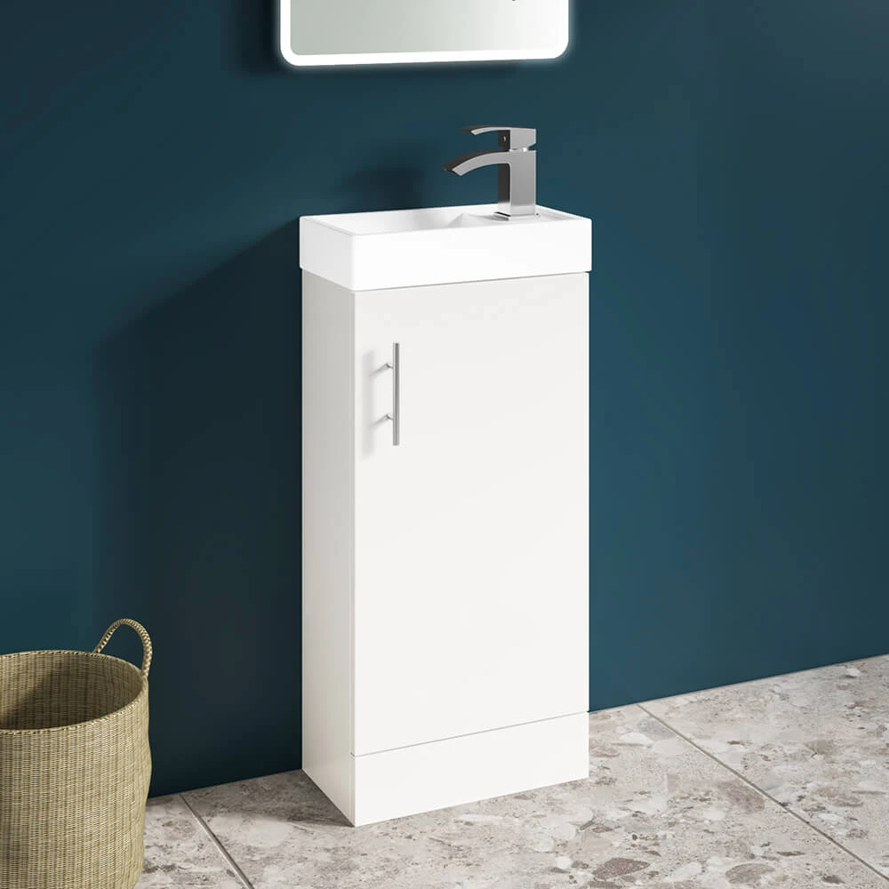 - Modern ceramic basin with overflow – can be turned so the tap is on the left or right