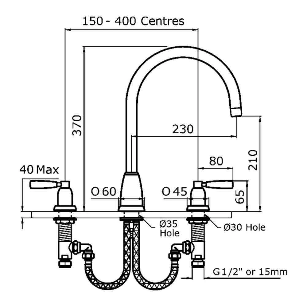 The Callisto straddles both contemporary and classic design and is available with either crosshead or lever handles. This three or four hole tap is designed to be work top mounted usually behind undermount sinks. This combination results in a most sophisticated arrangement.
