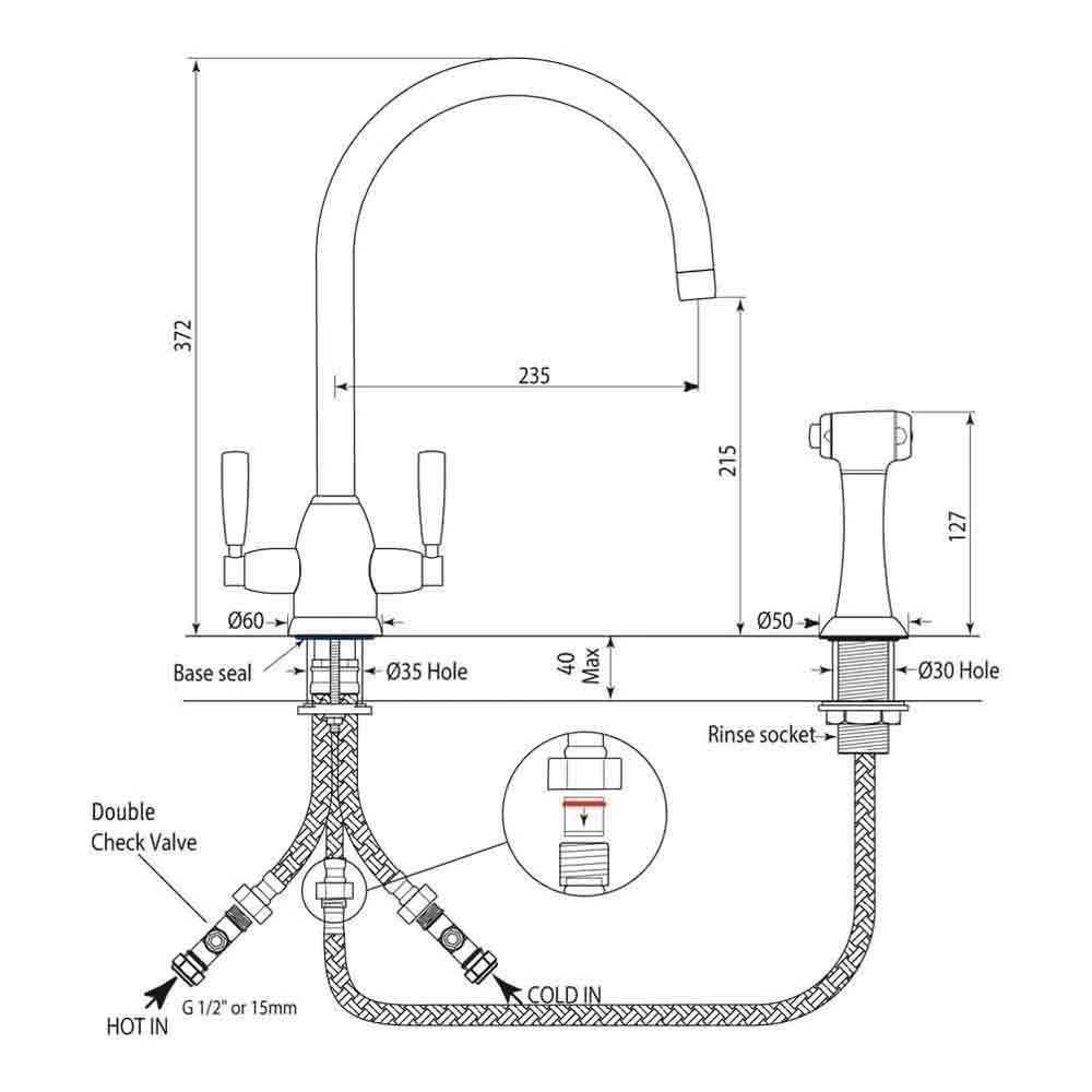 Hot, cold or mixed water is diverted from the running tap to the rinse once the handset trigger is pressed. Easy to use and versatile, the rinses can be positioned to the left or the right of the sink. They have insulated handles ensuring safety and convenience.