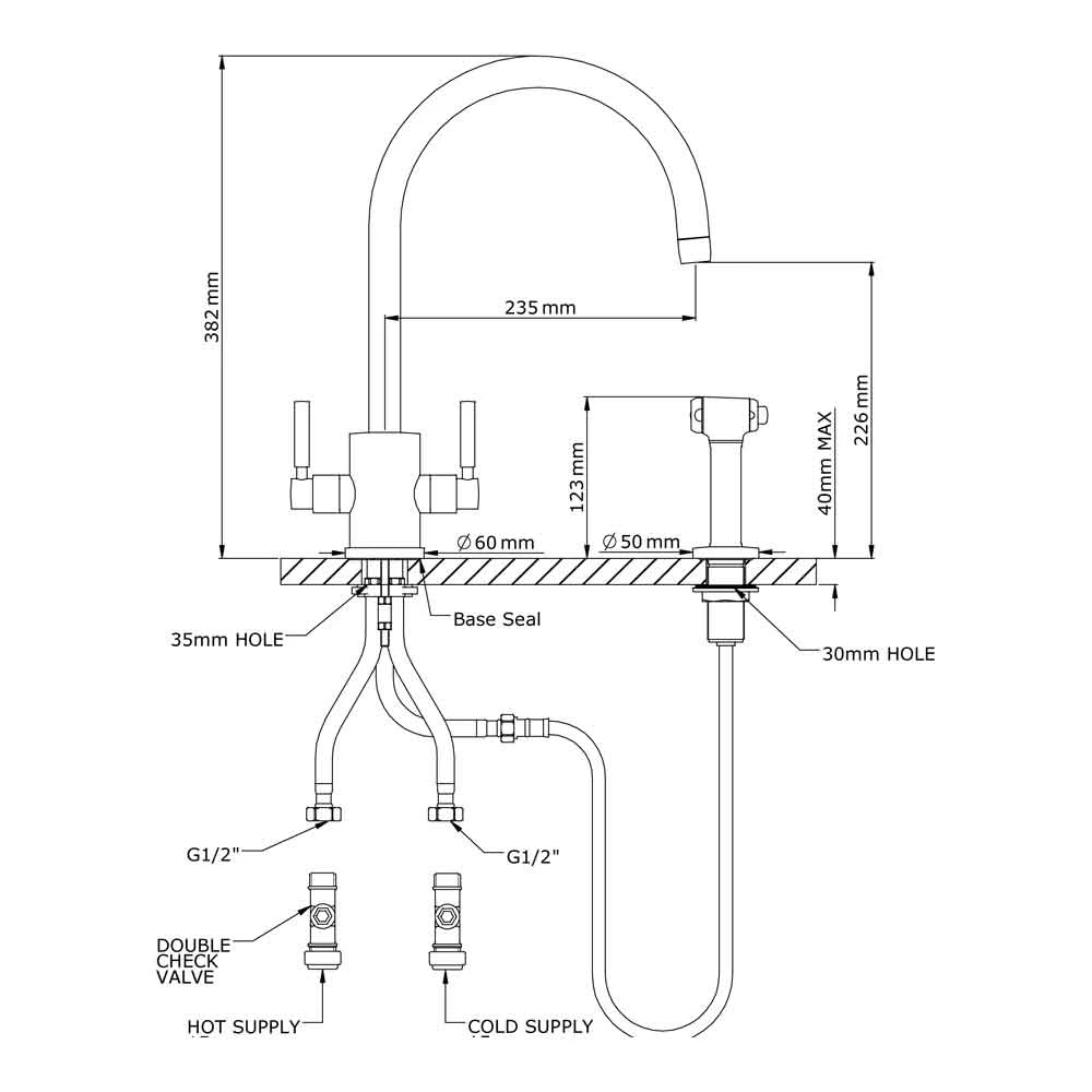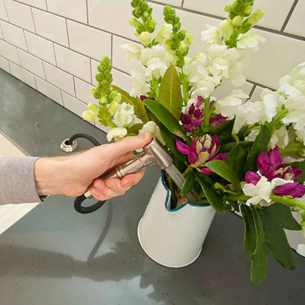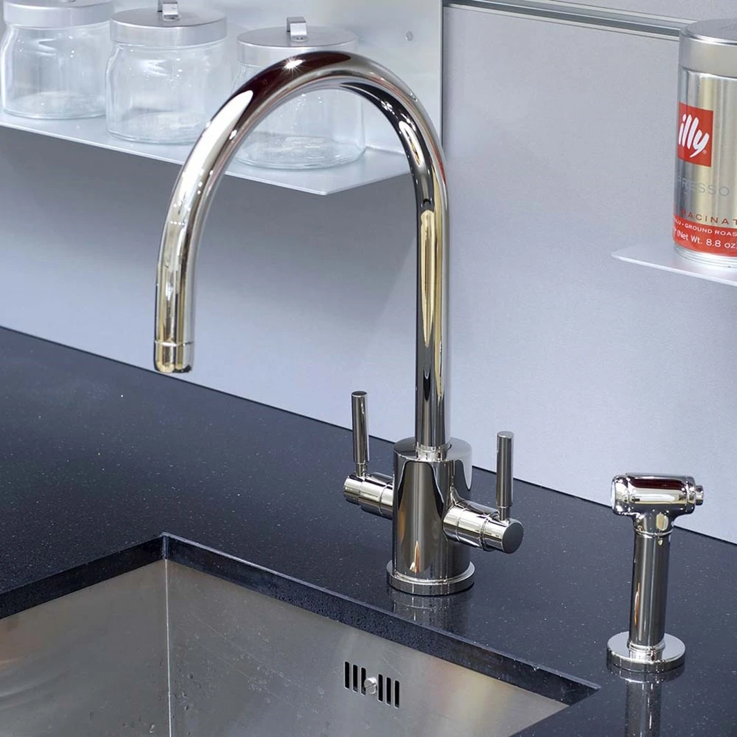 Featuring a Perrin & Rowe Hand Rinse, this product is easy to use and versatile. The rinse can be positioned to the left or the right of the sink. It has an insulated handle and a flexible and extendable hose ensuring safety and convenience. Hot, cold or mixed water is diverted to the rinse once the top button is pressed.