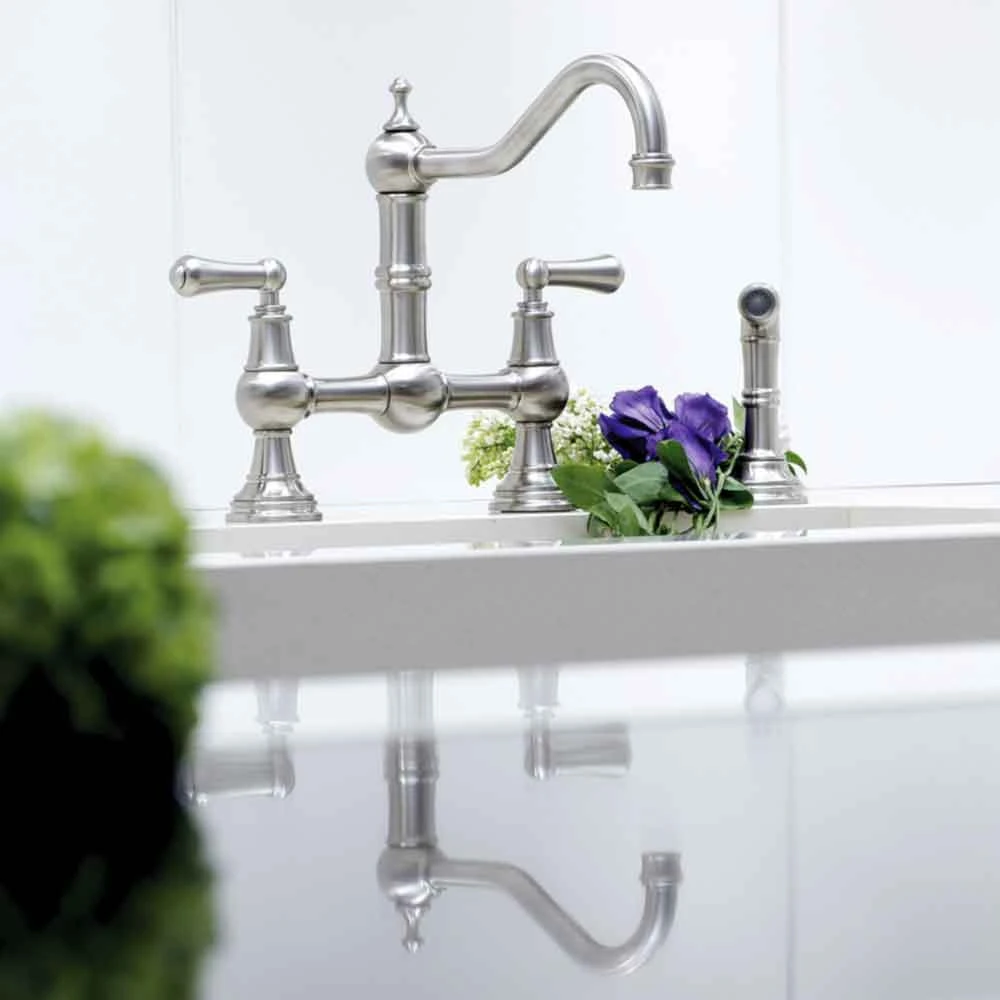 The Provence Range taps are a reminder of the flamboyant Baroque period where exuberant styling and extravagant detailing were all the vogue. This collection has bucket loads of presence and are a delight to use – all models have the latest quarter turn ceramic disc valves and the spouts swivel silkily from the uppermost junction. This takes away strain from the tap and reduces flex on the sink when the spout is moved.