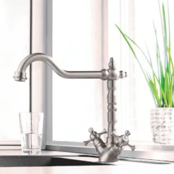 Clearwater Alrisha Traditional Twin Lever Mono Kitchen Mixer – Brushed Bronze